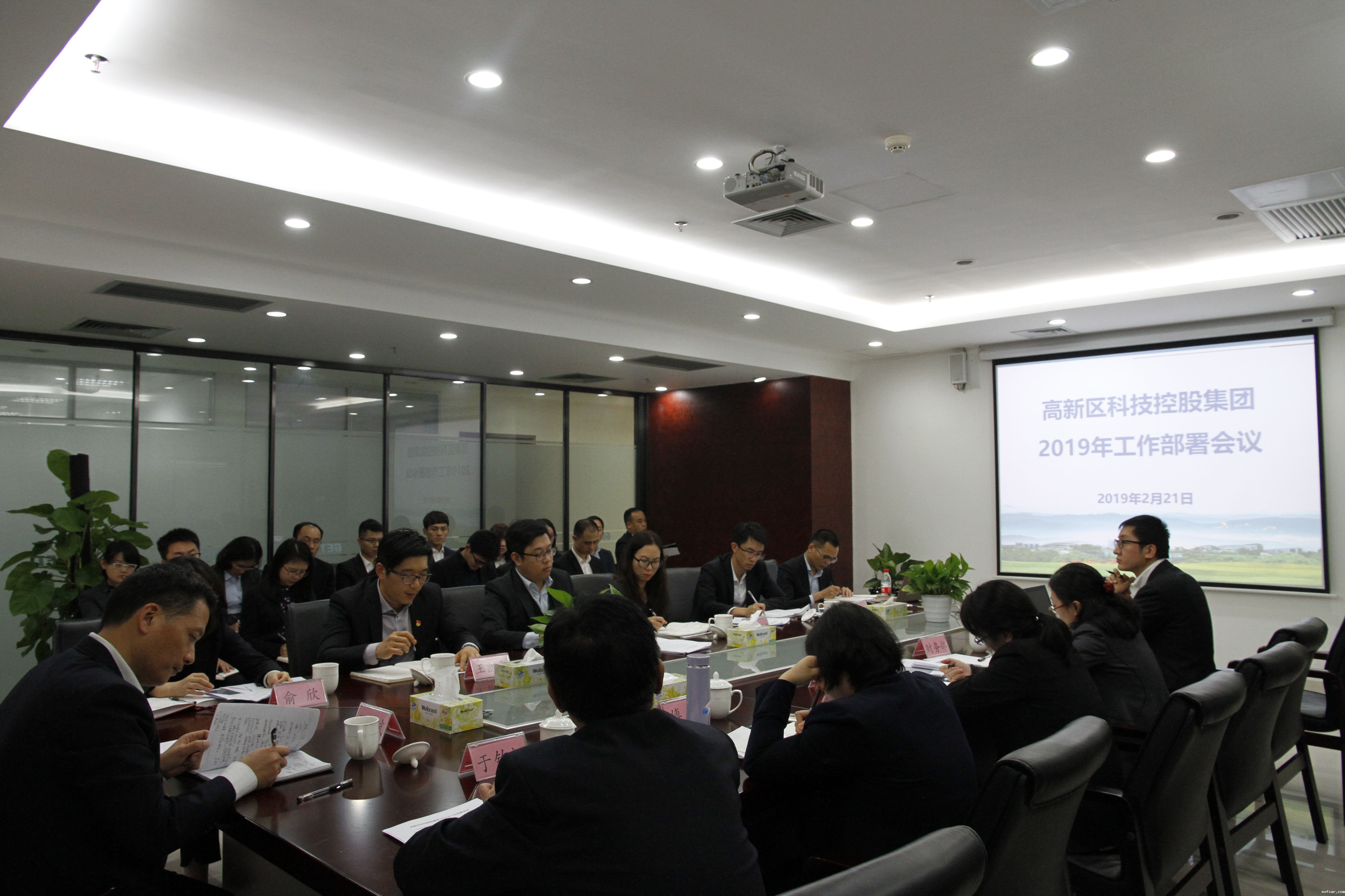 2019 年 2 月 21 日,科控集团召开2019 年工作部署会议,会议就公司2019年党建工作、招商引资、投资规划、资产管理等重点工作做了部署。金控集团严亦斌董事长、俞欣副总经理,科控集团于钦江董事长、王凯翔总经理及公司全体领导班子成员、干部职工出席了会议。